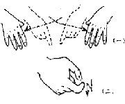 (一)双手先以食指互碰一下,然后分开并张开五指。(二)同“保值”手势(左手伸出拇指;右手微曲,绕左手半圈。)